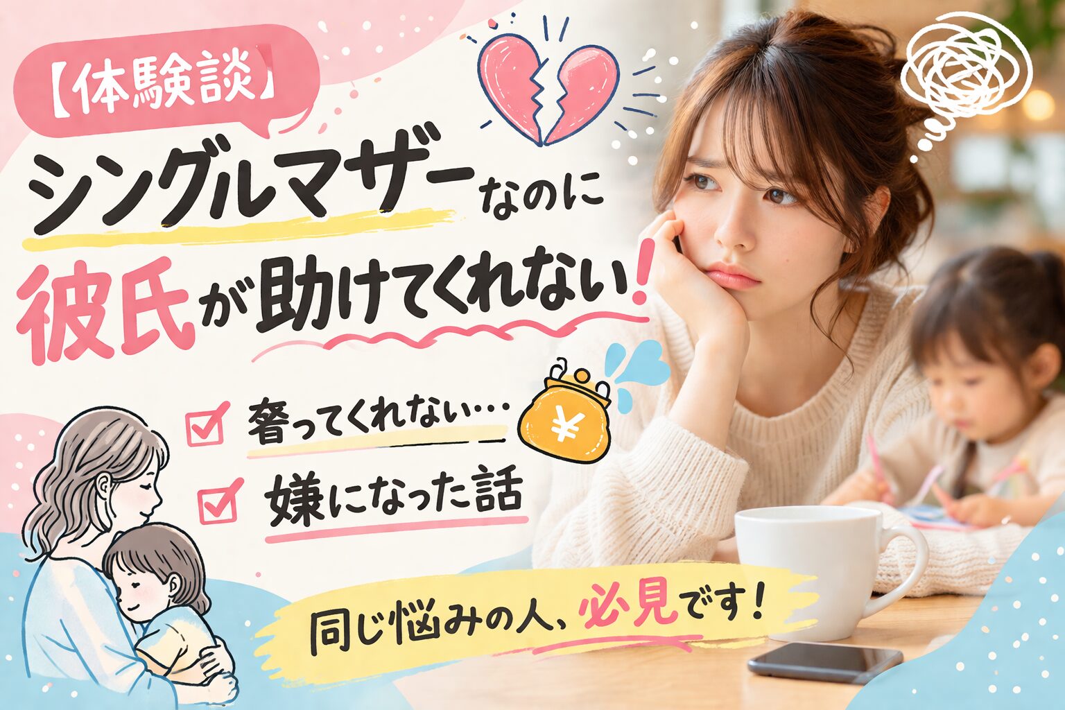 ここまで、シングルマザーなのに彼氏が助けてくれない!奢ってくれないから嫌になった話についてお話してきました。